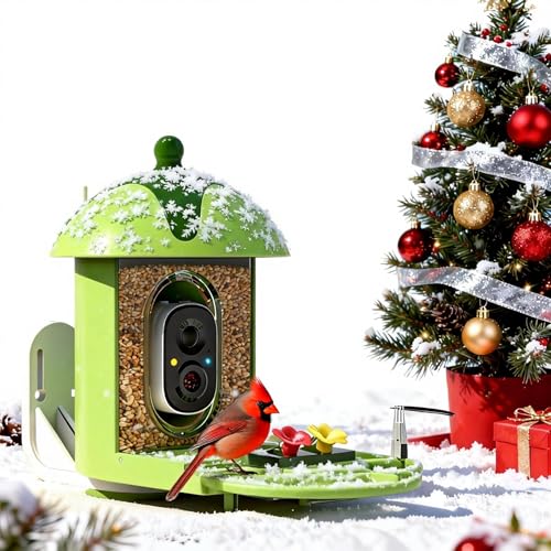 Smart Bird Feeder with Camera Outdoor Birdhouse: AI Identifies 11000+ Species, 2K HD with Arrival Alerts, Attracts Hummingbirds, Dual Squirrel-Proof, Solar Powered, Gifts for Bird Lovers Mom Dad