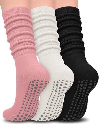 Aoliks Slouchy Grip Pilates Socks for Women,Yoga Grippy Socks for Barre Dance Hospital Barefoot Workout