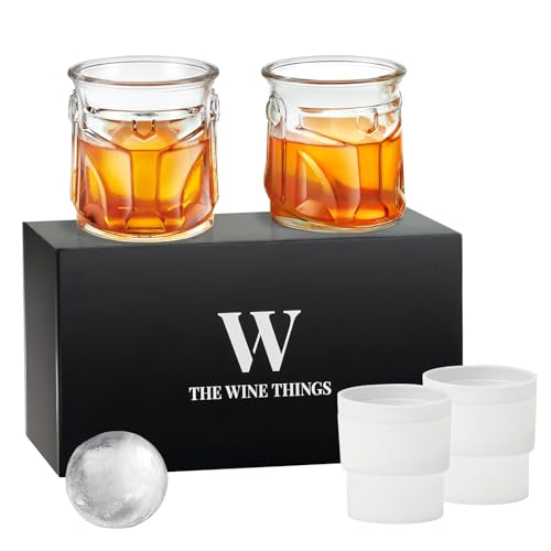 Whiskey Glasses Set of 4, 2 Crystal Glasses & 2 Big Ice Ball Molds In Luxury Gift Box, 13.4 Oz Galaxy Helmet Glasses for Vodka Bourbon Liquor, Unique Gifts for Men Dad Women Home Bar Festival Party