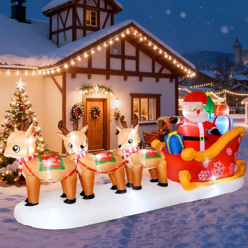 Christmas Blow Up Yard Decorations - 12 FT Christmas Inflatables Santa Sleigh and Reindeer Outdoor Decoration Built-in 13 Led Christmas Decorations Outdoor Inflatable for Yard Lawn Roof Xmas Party