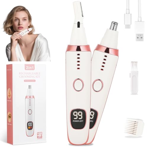Mendaping 2025 Rechargeable Nose & Ear Hair Trimmer, Dual-Edge Blade Electric Clipper for Women Men, Facial & Eyebrow Hair Removal Tool, Powerful Motor, Painless, Easy to Clean (Pink White)