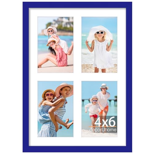 decorUhome 10x14 Picture Frames Collage Wall Decor, Display 4Pcs 4x6 Photos with Mat or 1Pcs 10x14 Unmatted, 4 4x6 Collage Picture Frames for Wall Mounting, Royal Blue