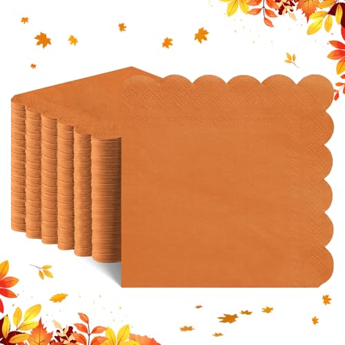 NatNarr 120 Pcs Orange Napkins,Scalloped Thanksgiving Fall Napkins Disposable Orange Dessert Beverage Napkin Burnt Cocktail Napkin for Fall, Thanksgiving,Birthday, 5 x 5 Inch