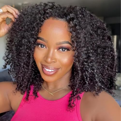Fardoen Kinky Curly Half Wig Human Hair 250 Density Headband Wig Human Hair Glueless Wigs Wear And Go Drawstring Seamless Flip Beginner Friendly Curly Wig Human Hair Wigs For Black Women 16 Inch