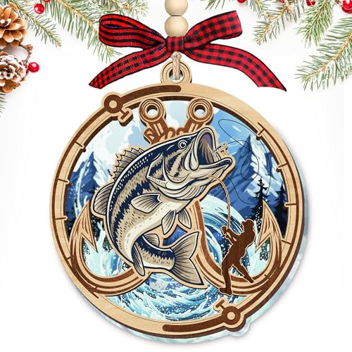 HEXMOZ Fishing Ornaments for Christmas Tree - Fish Ornament for Fisherman, Grandpa, Dad, Husband - Fishing Christmas Ornaments - Bass Ornament Gift Ideas - Xmas Holiday Decorations 2025