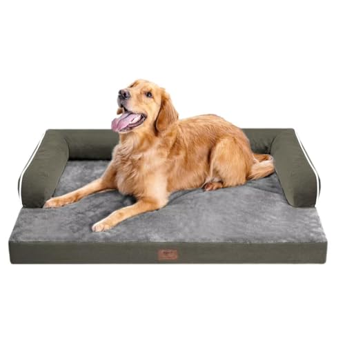Large Dog Bed Orthopedic Washable - Removable Waterproof Cover Bed Pet - Large Big Dogs - Memory Foam - Couch Sofa with Removable Bolster - Dark Green Dog Bed
