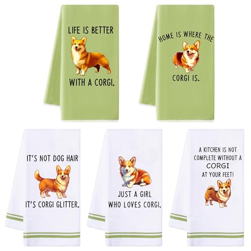 R Horse Funny Corgi Kitchen Dish Towels - 5Pcs Cute Corgi Themed Kitchen Dish Cloths Absorbent Dishcloths for Dog Lovers, Cleaning Hand Towels Funny Housewarming for Dog Owners Women