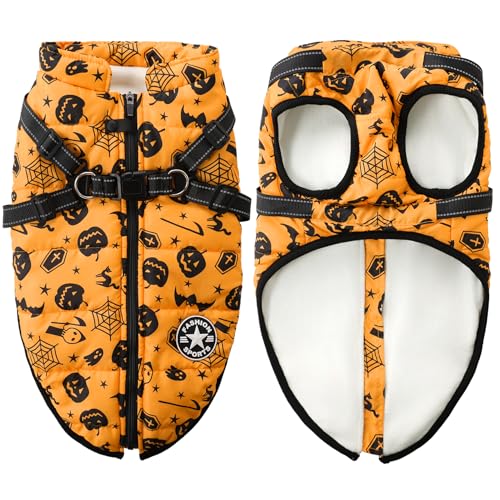 Aiboria Dog Jackets Windproof Outfit Coat Dog Vest Harness Puppy Warm Jacket Halloween Orange XL