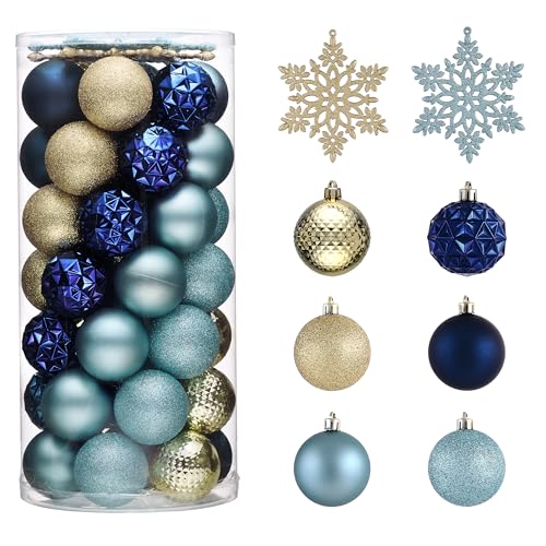Valery Madelyn Christmas Tree Decorations Ornament Set, 50ct 2.36 Inches Blue and Gold Shatterproof Christmas Ball Ornaments Hanging Xmas Holiday Party Decor