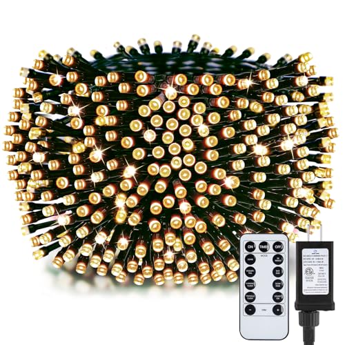 328FT 1000 LED Christmas Lights Outdoor - 8 Modes Christmas String Lights Clear Wire with Time Memory, Waterproof Plug in Fairy String Lights for Indoor Outdoor Home Party Garden Decoration, Blue