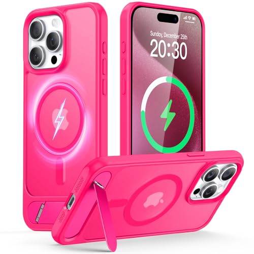 VENINGO Magnetic Case for iPhone 15 Pro Max Case 6.7" Compatible with Mag Safe, Military-Grade Protection with Built-in Kickstand,Skin Feeling,Ultra-Strong Magnets,Hot Pink