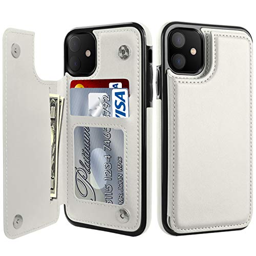 LETO for iPhone 11 Case,Luxury Flip Folio Leather Wallet Case Cover with Built-in Card Slots and Kickstand for Girls Women,Protective Phone Case for iPhone 11 6.1" White