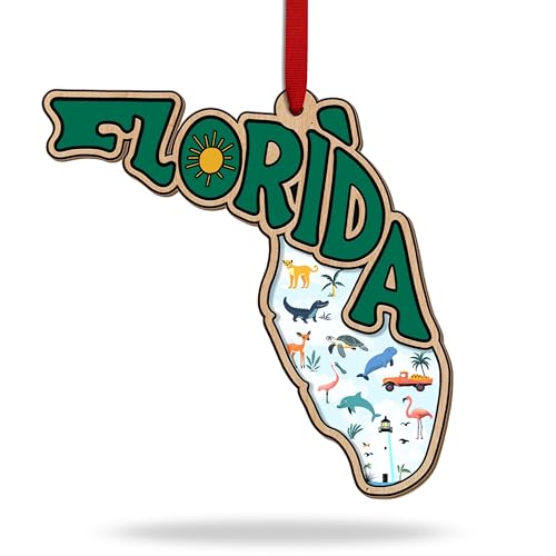 Florida Christmas Ornament, Florida Ornament for Christmas Tree, State Souvenir, Holiday Decor, Xmas Gifts, 3D Wooden Acrylic Cut Souvenir Ornaments Gift for Men Women Family Friends