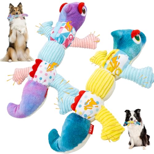 belieonu Crinkle Dog Toys Squeaky Plush No Stuffing Cute Puppy Stuffless Tough Rop Pull Toy, Fun Dog Stuffed Animals Durable Chew Set for Small Medium Large Pup (Large, Blue+Purple Chameleon)