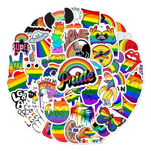 BEATRI LGBT Pride Stickers 50Pcs Rainbow Stickers Vinyl Waterproof for LGBTQ Bi Trans Lesbian Pride Stuff, Gay Stickers for Laptop Case Water Bottle Helmet