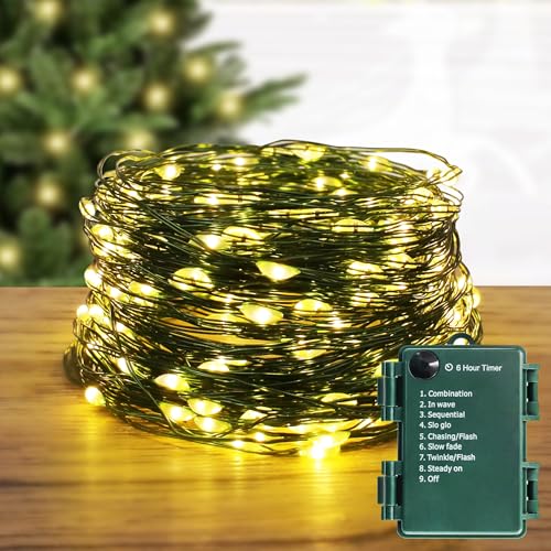 AMMAKER LED Fairy Lights - Battery Operated 34Ft Starry Lights, 100 Micro LEDs in 8 Modes with Timer for Christmas Tree, Dark Green Copper and Warm White