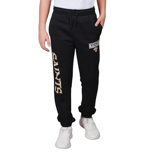 Ultra Game NFL Official Youth Super Soft Game Day Jogger Sweatpants, New Orleans Saints, Black, 8