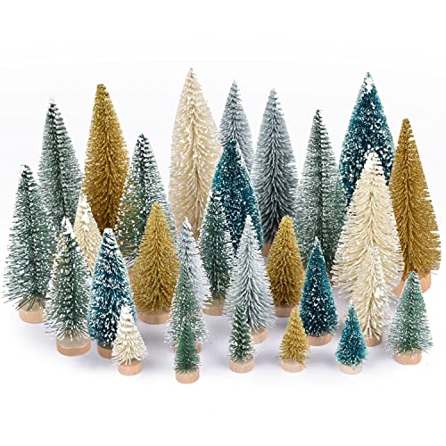 DearHouse 30PCS Artificial Mini Christmas Trees, Mini Pine Tree Sisal Trees with Wood Base Bottle Brush Trees for Christmas Table Top Decor Winter Crafts Ornaments (Gold, 30)