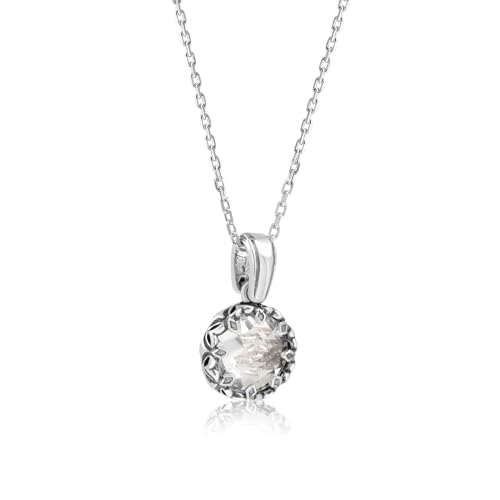 ADITA GOLD 925 Sterling Silver White CZ Necklace for Women - April Birthstone Pendant - Dainty Elegant Silver Jewelry - for Special Occasions or Everyday Wear - Shimmering White Cubic Zirconia