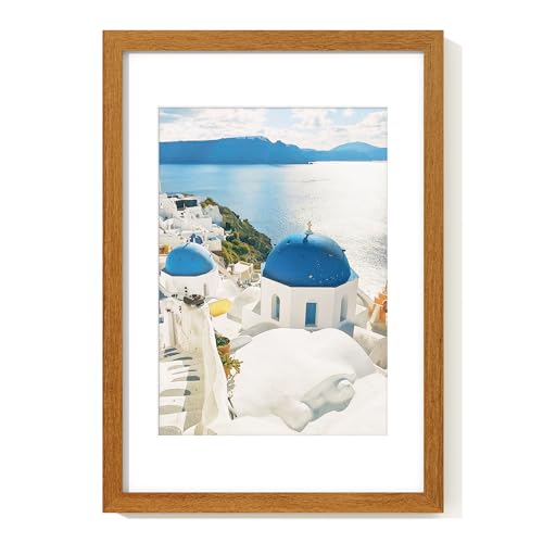 Axeman A3 Picture frame with mat for A4, Tempered Glass and Hanging Hardware Included Natural Teak Home Decor Art Hanging Poster Frame, Natural Teak