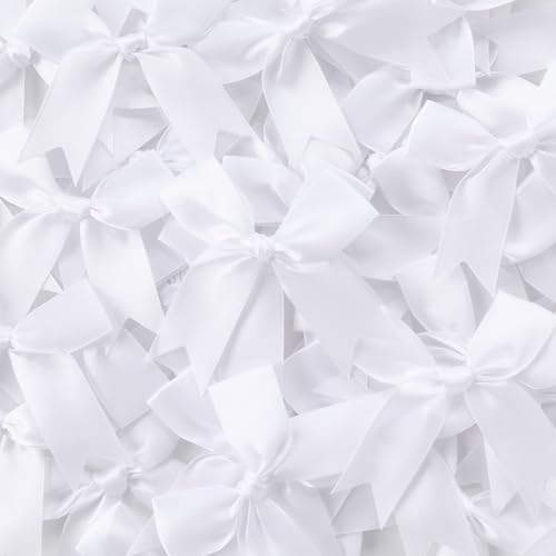 100 Pcs White Gift Wrap Bows,3.3 Inch Elegant Bows for Gift Wrapping, DIY Crafts, Party Decorations, Baby Shower, Birthday, Wedding Decor,Christmas, Gift Bags