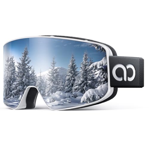 Lamicall Ski Goggles with 3X Anti-Fog - 100% UV Protection, OTG & Helmet Compatible for Men & Women, Comfortable Fit for Skiing, Snowboard, Snowmobile, White Silver