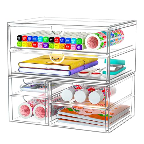 ARSTPEOE Acrylic Organizer with 6 Drawers, Bathroom Counter Organizer, Makeup Desk Organizers, Office Supplies, Storage Drawers for Cosmetic, Pencil, Coffee