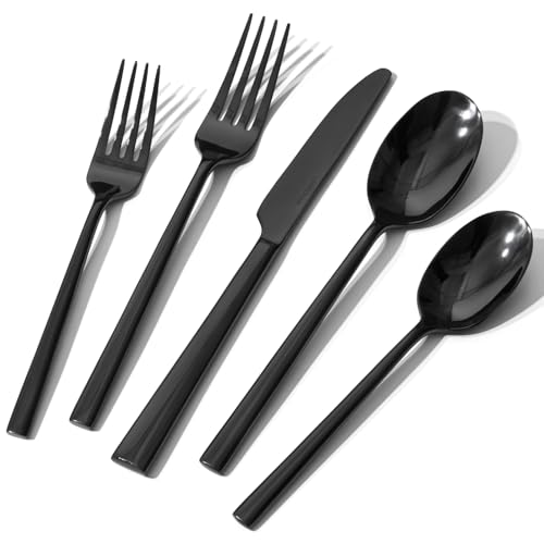KINGSTONE Black Silverware Set, 40-Piece Forged Flatware Set Cutlery Set Premium Stainless Steel, Service for 8, for Kitchen, Home, Wedding, Party, Mirror Polished and Dishwasher Safe