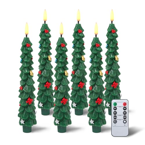 Flameless LED Christmas Tree Candles, 6 Pack – Battery Powered Holiday Lights with Warm Flickering Glow, Safe No-Flame Decor for Mantels, Dinner Parties, Family Gatherings & Gifting