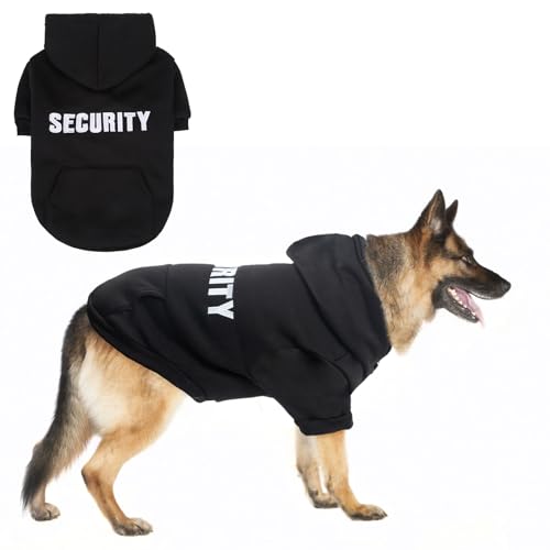 SCENEREAL Security Dog Hoodie Sweater for Large Medium Small Dogs, Embroidered Dog Clothes with Hat Pockets and Leash Hole, Soft Warm Fleece Pets Cold Weather Halloween Costumes for Boys Girls