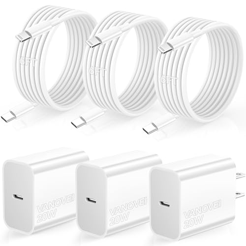 for i.Phone Charging Fast Charger, 20W USB C Charger Block with 6FT USB C to Liightning Cable Compatible with Phone 14/13/12/11/Pad, 3Pack White