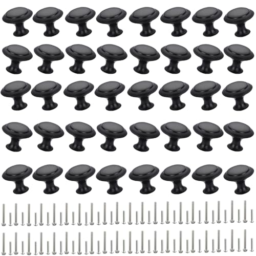 SmaringRobot 40 Pieces Cabinet Knobs, Kitchen Cabinet Handles, Drawer Pulls with Screw, Matte Black, Solid Zinc Alloy, 1-1/6 Inch (30mm) Diameter, Round Cabinet Hardware for Dresser Door, Cupboard