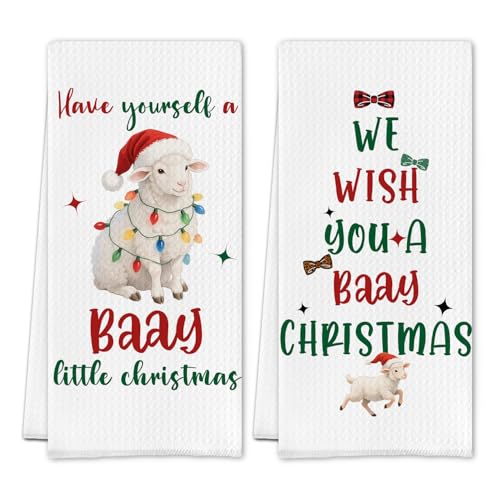 SereneHanctuary Merry Christmas Sheep Kitchen Towels, Gifts for Sheep Lovers Dish Tea Towels, Holiday Winter Xmas Lamb Decorative Hand Towel for Kitchen Bathroom, 16x24 Inch Set of 2
