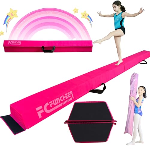 6FT/9FT Folding Balance Beam for Kids ages 3-15- Foldable Gymnastics Floor Beam,Anti-Slip ,Carrying Bag, Faux Suede Covered,EVA foam,Gymnastics Equipment for Kids Training At Home,School,Gym Center