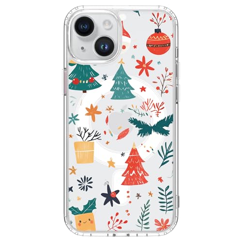 Idocolors for iPhone 15 Pro Case Christmas, Compatible with MagSafe, Xmas Crystal Clear Phone Case for Women and Girls, Slim Fit Transparent Shockproof Protective Phone Cover for iPhone 15 Pro