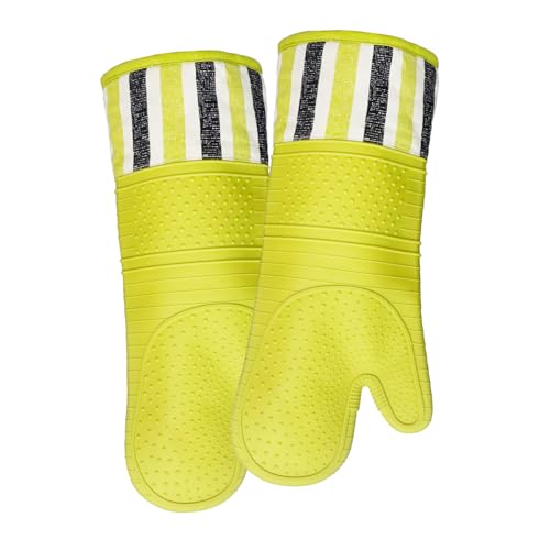RED LMLDETA Heat Resistant 550 Degree Oven mitt, Silicone Oven Hot Mitts - 1 Pair, Extra Long Professional Baking Oven Gloves - Food Safe,Pot Holders Cooking,Grilling,Kitchen (Vanilla)