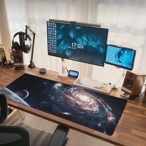 Space Universe Galaxy Earth Mouse Pad Extended Large Gaming Mousepad XL Big Long Oversized Desk Mat Stitched Edges 31.5 X 11.8 Inch for Home Office