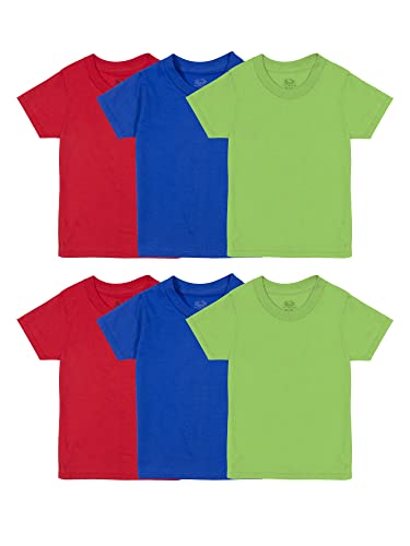 Fruit of the Loom Boys' Eversoft Cotton Undershirts, T Shirts & Tank Tops, T Shirt-Toddler-6 Pack-Blue/Green/Red