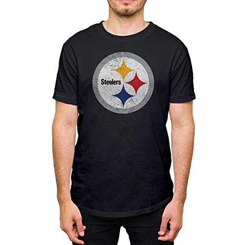 Hybrid Sports NFL - Pittsburgh Steelers - Distressed Team Logo - Men's and Women's Short Sleeve T-Shirt - Size Large - Pittsburgh Steelers - Black