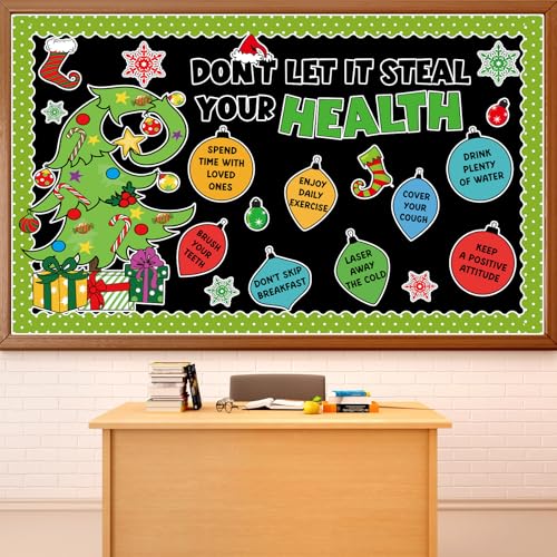 Christmas Bulletin Board Decorations Christmas Accents Healthy Habits Cutouts Red Green Xmas Elf Tree Paper Classroom Decors for Winter Holiday School Classroom Chalkboard Wall Decor Supplies
