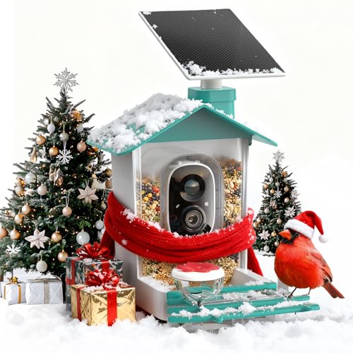 COOAU 2K Smart Bird Feeder with Camera, Faster Solar Powered Charging, Outdoor Birdhouse Cam with Precise AI Birds Recognition, Live Video Watching and Notifications, Ideal Gift for Bird Lovers, Blue