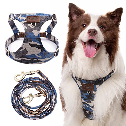 Dog Harness, No Pull Dogs Harness and Multi-Function Leash Set for Medium Dogs Easy Walk Everyday Adjustable Soft Dog Vest Harness Fashionable Dog Accessories Camouflage Blue-Slim Large