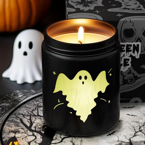 Halloween Decor Indoor-Halloween Gifts Candles for Women with LED Ghost, Ghost Candle with Mint & Musk Scent Over 40 Hours of Burn Time, Gift for Holiday, Home Fall Decorations Indoor, 100% Soy Wax