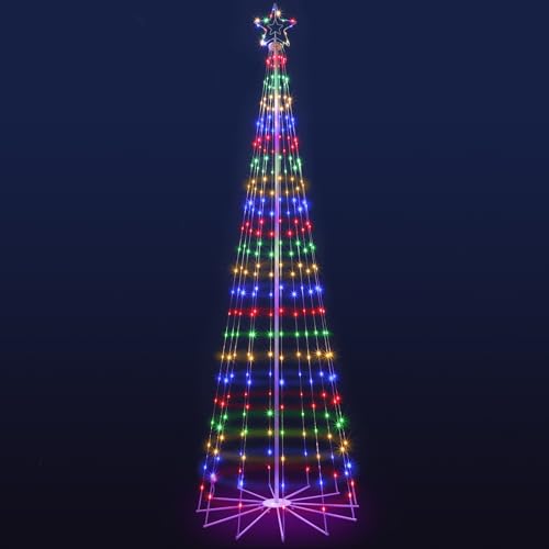 OUSHENG LED Outdoor Christmas Tree Light Show Decorations, Outside Lighted Cone Xmas Decor with Star Toppers for Yard Porch Backyard Patio, 4 Colors, 10ft