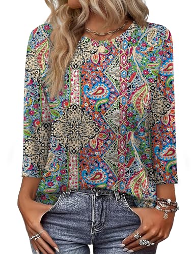 OFEEFAN Boho Tops For Women 3/4 Length Sleeve Tops Fall Fashion Must Haves Western Outfit Cowgirl Winter Clothing Work Blouses Boho L