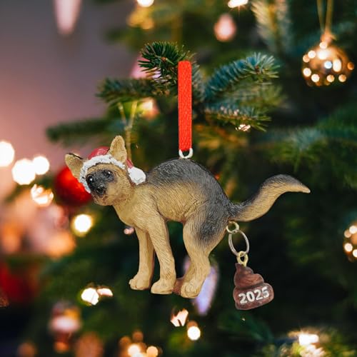 2025 Funny Christmas Ornaments Dog Christmas Ornament German Shepherd Christmas Ornament for Christmas Tree 3D Statue Hanging for Women Men Dog Lovers Gig Gifts