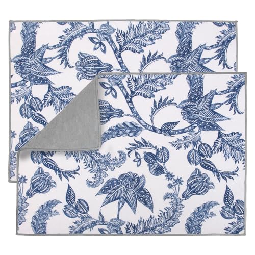 FULL BE DARE 2 Pack XXL 17" x 24" Blue and White Porcelain Dish Drying Mat - Dish Drying Mats for Kitchen Counter, Super Absorbent, Anti-Slip, Fast Drying, Kitchen Must-Have