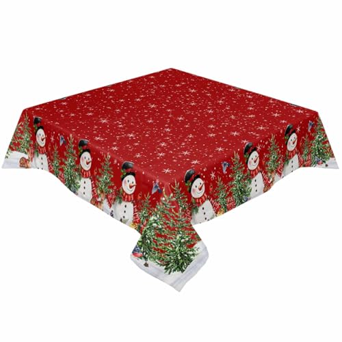 Christmas Tree Snowman Snowflake Tablecloth Rectangle Round Table Cloth 54x54 Inch, Red Indoor or Outdoor Tablecloth, Waterproof Fabric Table Cover for Party Holiday Picnic Kitchen Xmas Decorations