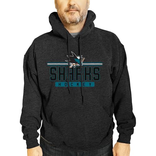 Wright & Ditson NHL Adult Heather Charcoal True Fan Hooded Sweatshirt Unisex - Unisex Cotton Poly Blend - Ultimate Comfort (San Jose Sharks - Charcoal, X-Large)