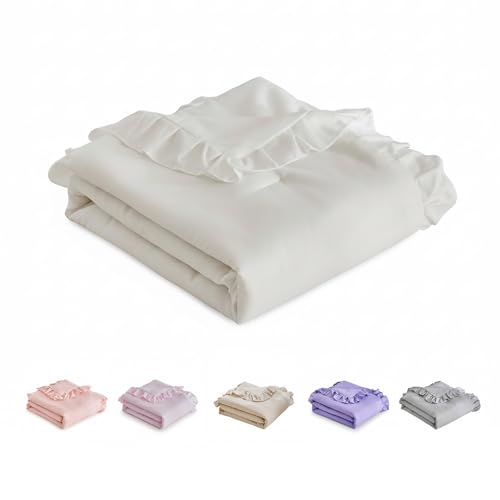 Ruffled Toddler Blanket Ruffle Comforter for Baby Toddler Girls, Soft Cozy Cute Quilted Blanket Breathable Microfiber Comfortable Down Alternative Small Size Quilt with Ruffle - 43"x 60" White